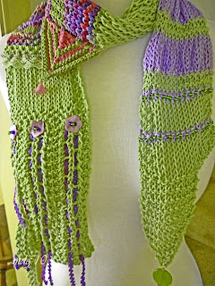 I love all colors and I always have. I certainly have my favorites. Lime green and aqua/tuquoise are always popping up in my knitting and beading. But I also love bright colors like red and orange, bright pink and yellow. I noticed several years ago that I tend to change color palettes with the seasons. In Spring and Summer I love to wear light, bright colors. I can't wait for the day it's warm enough to paint my toenails and put on my sandals. In Spring I tend to work with beautiful spring greens and lavendars, I call it my lavendar fields period.